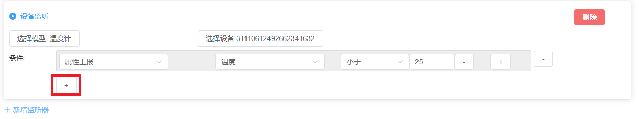 设置设备监听:添加监听设备、添加并设置监听条件(如:温度低于25℃)