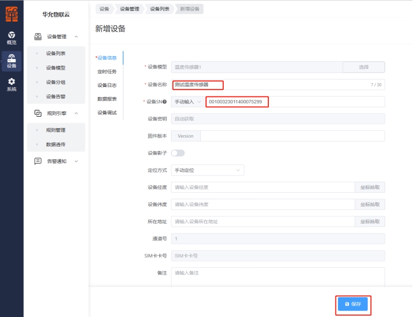c.配置设备名称、设备SN等参数。
